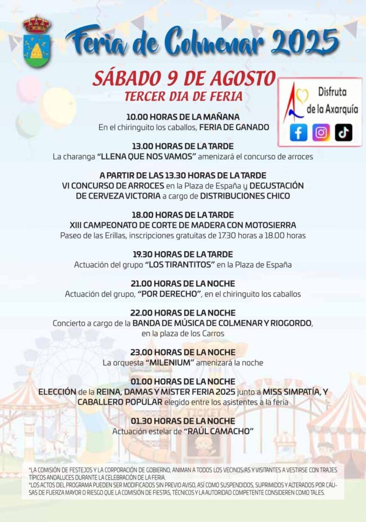 Colmenar celebra cada año su Feria durante 4 días a principios de agosto.